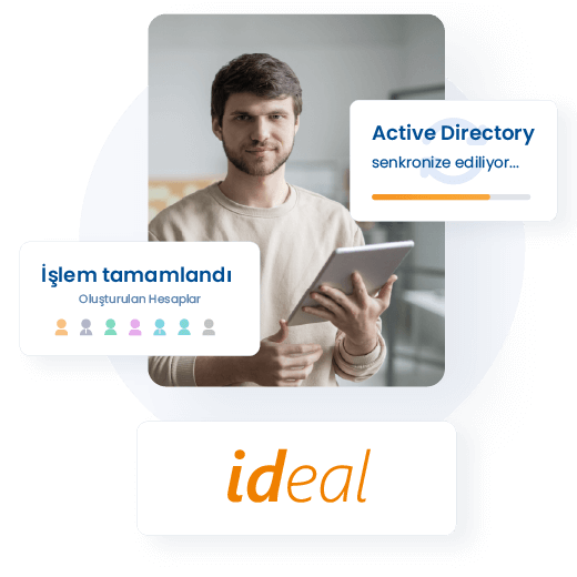 ideal ile İnsan Kaynakları biriminizde kullandığınız uygulamadan aldığımız personel bilgileri ile Active Directory üzerindeki tüm kullanıcı ve grup hesaplarınız otomatik tanımlanır.