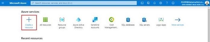 1 – Azure Portal’e girerek yeni bir kaynak oluşturmaya basıyoruz