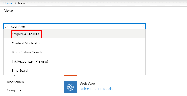 2 – Cognitive Services yazarak servisimizi oluşturuyoruz