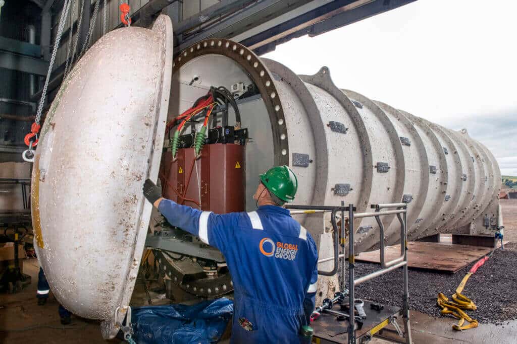 Once it was hauled up from the seafloor and prior to transportation off the Orkney Islands, the Green Marine team power washed the water-tight steel tube that encased the Northern Isles’ 864 servers and related cooling system infrastructure.