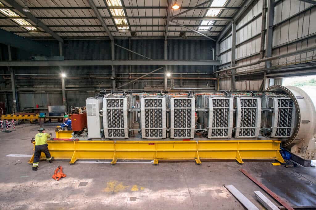 The cleaned and air-sampled datacenter was loaded onto a truck and driven to Global Energy Group’s Nigg Energy Park facility in the North of Scotland. There, Naval Group unbolted the endcap and slid out the server racks as Fowers and his team performed health checks and collected components to send to Redmond for analysis.