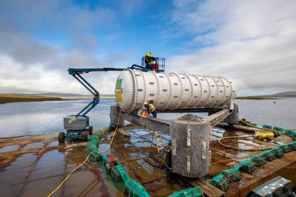 The Northern Isles was deployed at the European Marine Energy Centre, a test site for tidal turbines and wave energy converters. Tidal currents there travel up to 9 miles per hour at peak intensity and the sea surface roils with waves that reach more than 60 feet in stormy conditions.